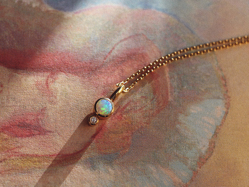 Opal Spider Stud Earring with Diamond Web - Single